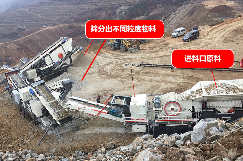 四合一指的是四種設(shè)備放在一臺車上:給料機(jī)+鄂破+篩子+圓錐破/反擊破。